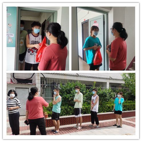 中秋佳节即将到来之际,商务系综合办公室主任蔡丹丹老师为集中隔离的学生送去关爱,恰逢他们再次进行核酸检测,蔡丹丹老师马上进入角色,组织学生严守“一米线”要求,紧绷防疫弦。