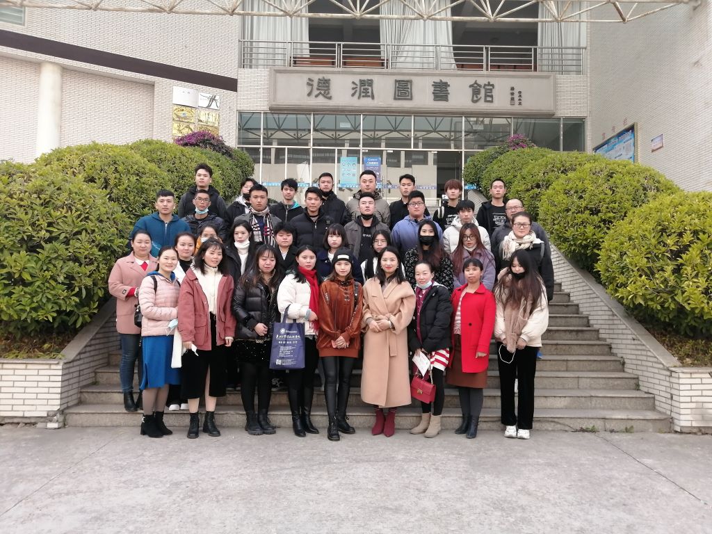 吴田力主任向班级学生介绍了“二元制”市场营销专业课程的相关情况及学院网络教学平台的使用,最后,全体人员在学院图书馆前拍照留念。