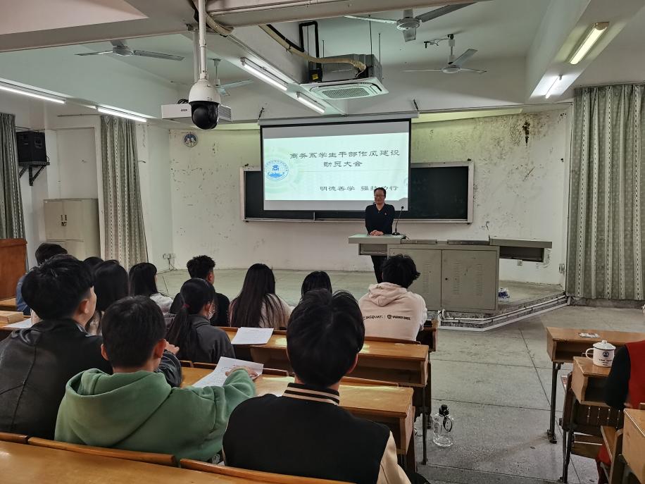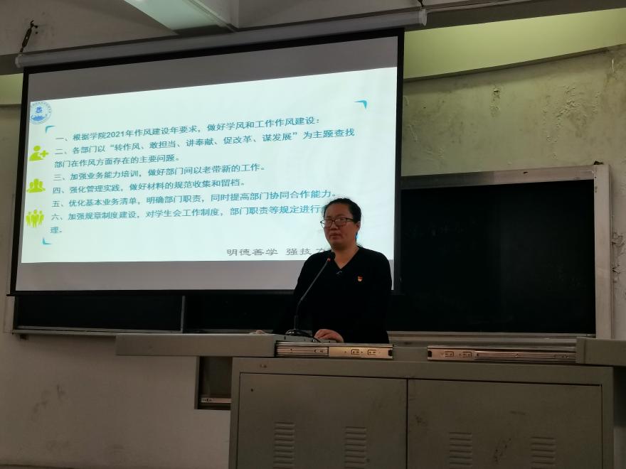 蔡丹丹老师为学生干部进行了作风培训,提出要保持为同学服务的初心,敢于正视自己的错误,及时反省,同时也要拥有博大的胸怀;强调学生干部要始终绷紧作风建设这根弦,始终把加强作风建设作为学生组织的生命线。学生干部应坚持以学生为本,激发和提升学生的活力,增强吸引力和凝聚力,提升服务意识和奉献意识,设身处地地为学生服务,也应牢记自己的首要身份是学生,要与同学互帮互助,平等相待,杜绝所谓的“官僚主义”,打造优良的作风,塑造积极上进的精神风貌,更好的为同学服务,更明确自身定位,认清自己的身份,从同学的根本利益出发,用实际行动做出表率,做好青年工作。