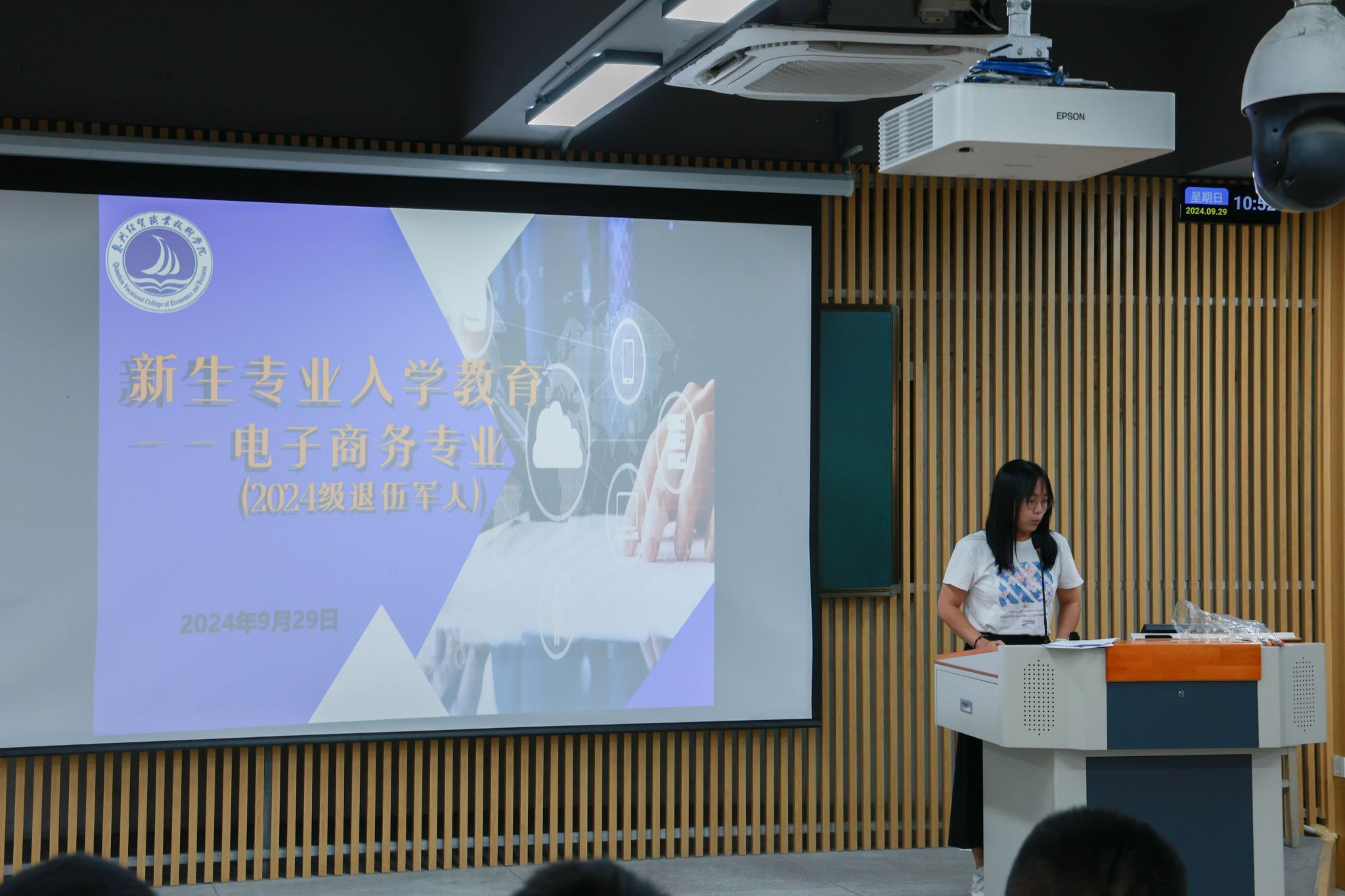 学院根据泉州产业、行业发展对技术技能人才需求,针对退役军人的特点,在商务系电子商务、市场营销等专业设置4个退役军人专班。开学典礼上,商务系党总支副书记蔡丹丹老师上台发言,讲述商务系这些年来的学风建设师资力量、课程设置及就业前景。商务系2024级退役军人班辅导员周少杰老师开展“开学第一课”教育,鼓励新生们积极探索、勇于实践。