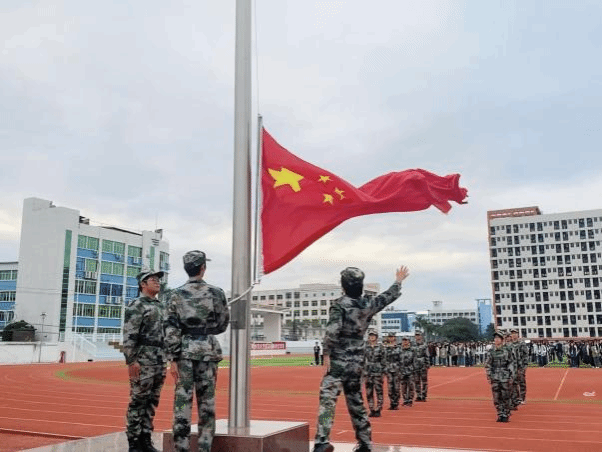 泱泱中华,万古江河;如日之升,如月之恒。国旗护卫队迎着清晨的第一缕阳光,迈着矫健整齐的步伐走向升旗台。全体师生面向国旗肃立致礼,随着《义勇军进行曲》的响起,师生们注视着五星红旗冉冉升起。
